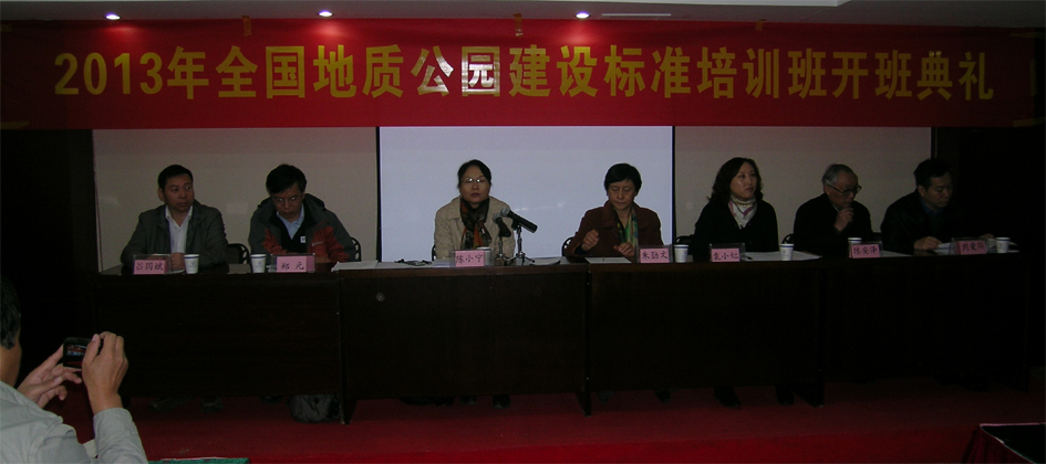 2013年全国地质公园建设标准培训班,于2013年11月17日至24日在湖北武汉凯瑞蓝箭酒店开班。根据国土资源部对国家地质公园的规划、建设及验收等方面的要求,由来自校内外的六位地学专业教师和地质公园建设专家,对来自全国的58家世界地质公园、国家地质公园的106名地质公园高级管理人员进行了培训。各位学员接受了地质公园概况、国家地质公园建设标准制定原则、地质公园管理机构与规划、世界地质公园建设、地质公园地质遗迹、科研与科普、地质公园解说与标识系统等方面的专业理论知识培训。并与地质公园导游培训班学员一起到一家世界地质公园开展了实训活动。