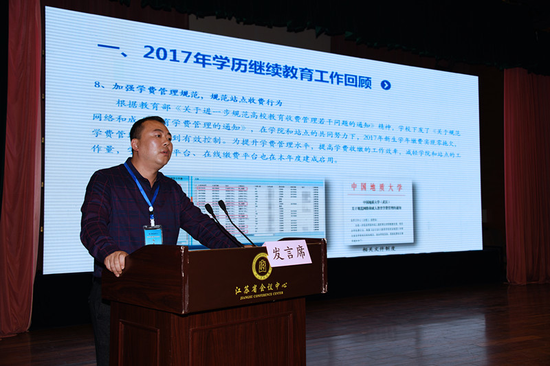 学院院长隋明成作《规范管理、提升质量,开创学历继续教育发展新局面》的学院工作报告。他对2017年学历继续教育工作进行了回顾和总结,指出了工作中存在的问题和不足。他从打造可持续发展的站点生态体系、构建特色招生办学支撑体系、完善以过程落实为主体的教学质量保障体系、提升信息化建设水平、实现课程资源综合应用共享、提升学费管理水平、提升自考管理水平等七个方面重点阐述了2018年学历继续教育工作要点。他还从站点管理规范性、站点建设重要性、打造继教服务“综合体”、创新站点活动形式等方面对继续教育工作进行了展望。