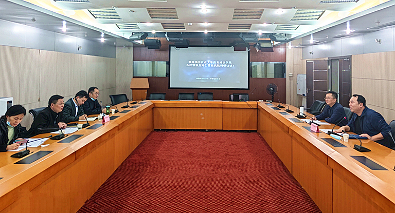 隋明成对郑杰一行来访表示欢迎。他简要介绍了学院五大主体业务、人员聘用、收入分配体制、培训工作开展等情况,分享了学院培训管理经验。