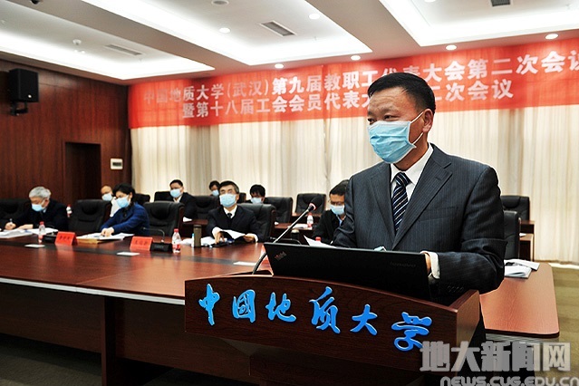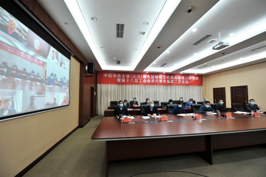 4月16日下午,我校第九届教职工代表大会第二次会议暨第十八届工会会员代表大会第二次会议(以下简称“九届教代会二次会议暨十八届工代会二次会议”)在教学综合楼及地大视讯网络会议系统召开。400余名正式代表和特邀代表、列席代表参加主会场及网络会议。