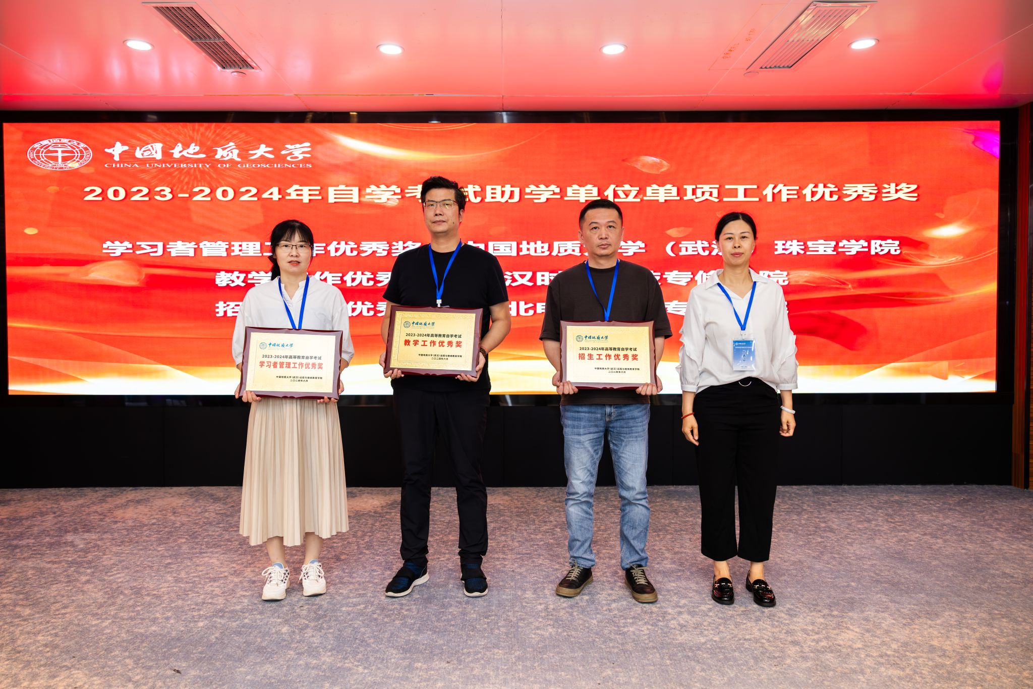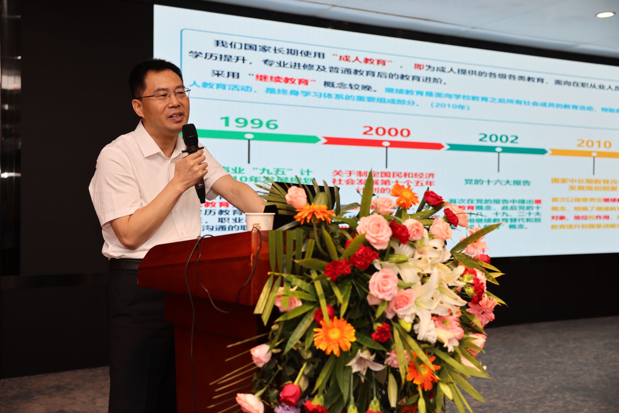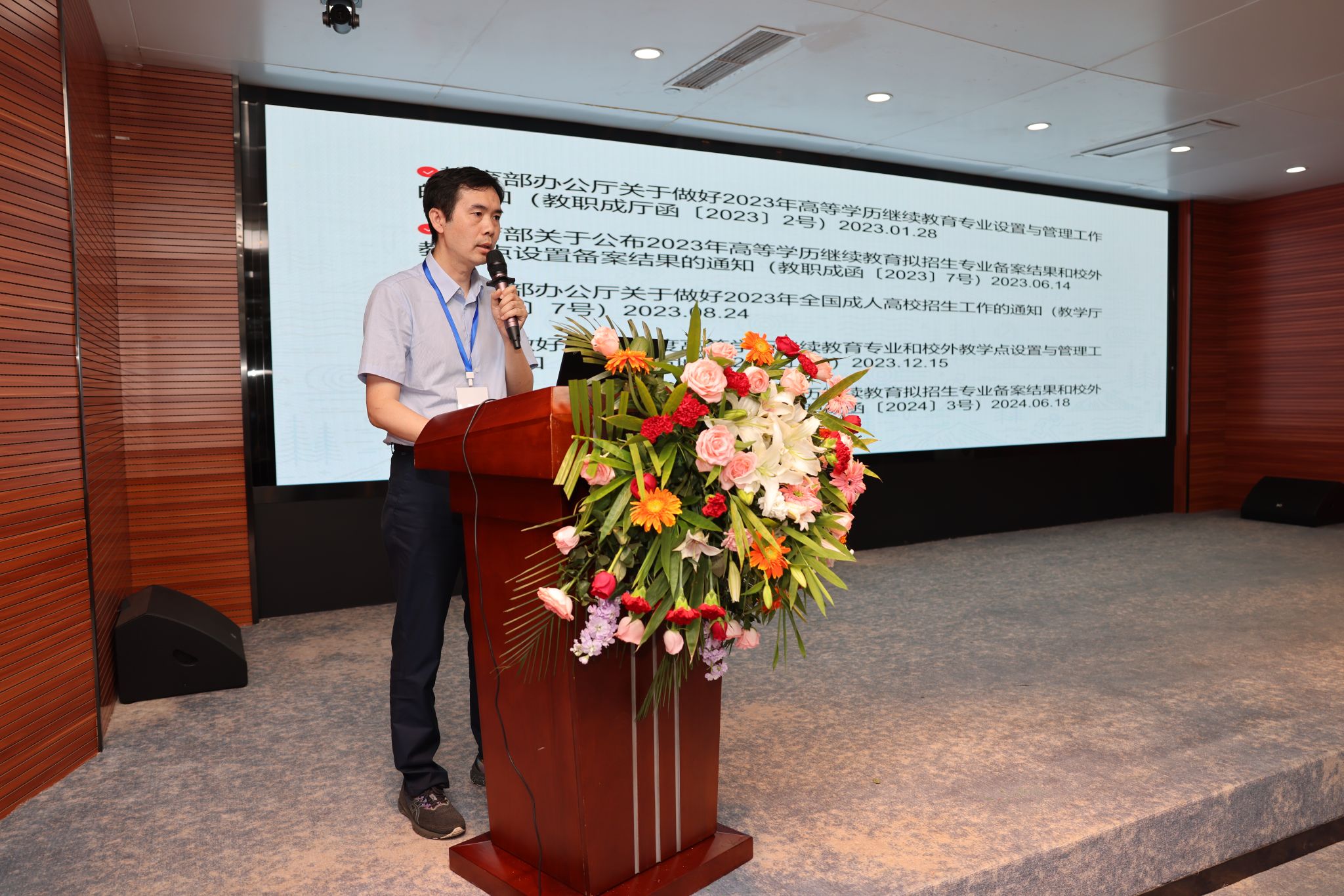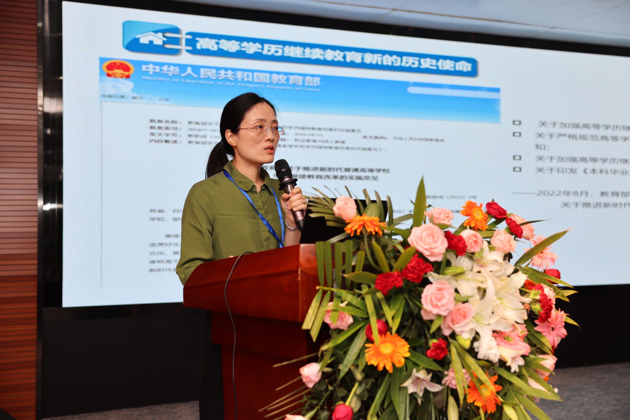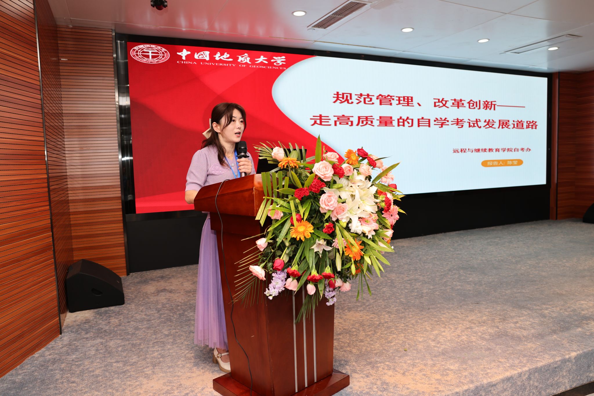招生与站点管理部主任胡志毅、教学管理部主任刘晓平、自学考试办公室主任陈莹分别作校外教学点建设和招生管理、地大特色高等学历继续教育教学新体系、高质量自学考试发展道路工作报告。