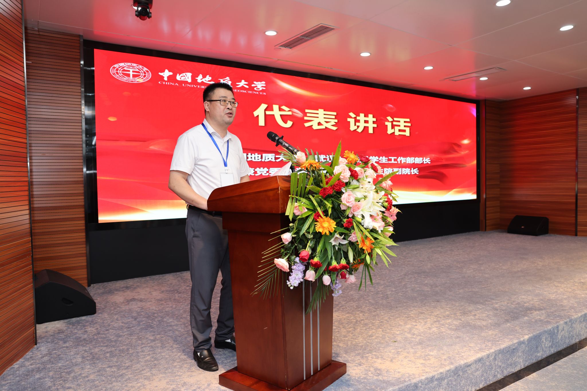 学校党委学生工作部部长兼党委武装部部长、本科生院副院长邬海峰代表职能部门讲话。