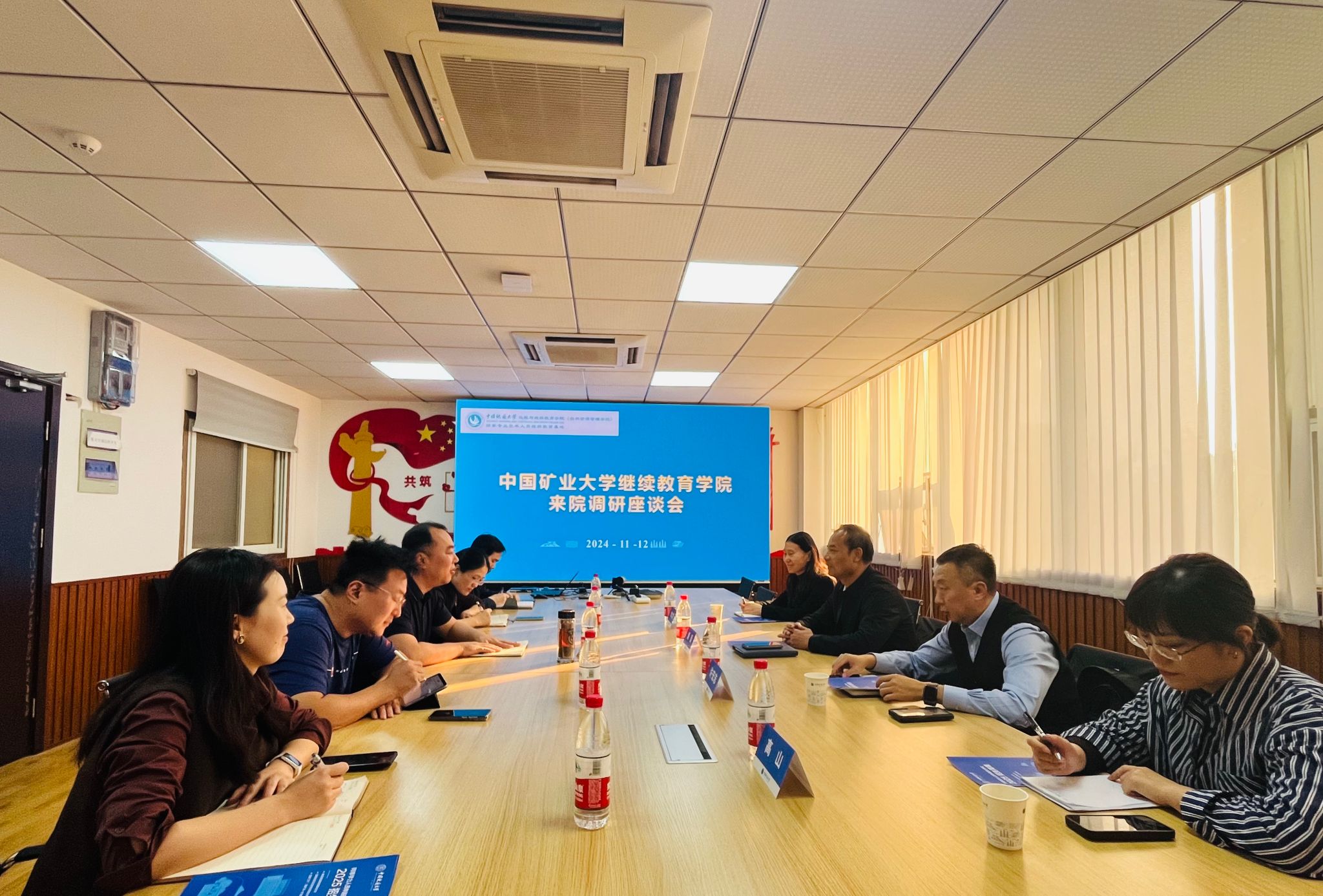 11月12日下午,中国矿业大学继续教育学院来院调研,就继续教育转型发展开展座谈。中国矿业大学继续教育学院党委书记周跃、中国矿业大学继续教育学院副院长许宏志、学院党总支书记、院长隋明成及双方相关部门负责人参加座谈。