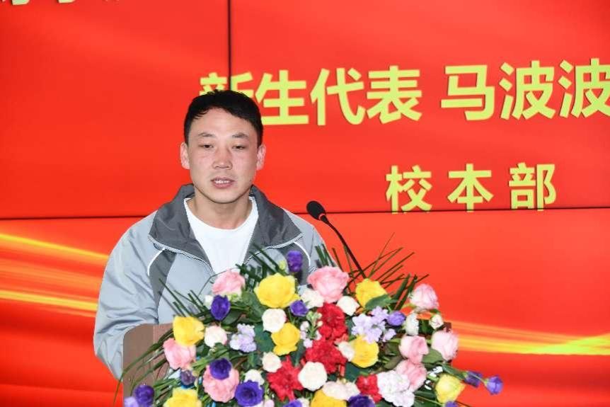 校本部新生代表2025级测绘工程专业学生马波波发表感言,他表示要珍惜学校提供的良好学习条件,扮演好新的角色,有计划地支配好时间,将工作和学习兼顾好。