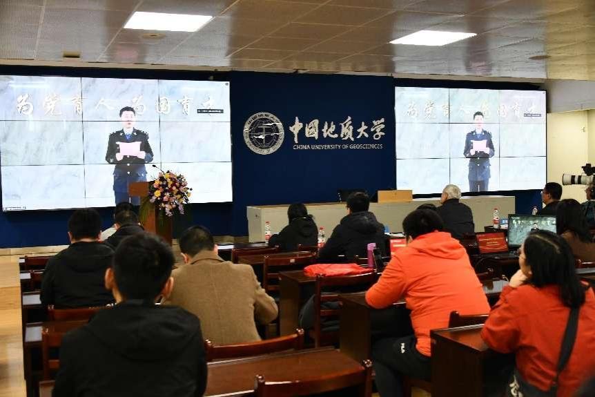 典礼结束后,傅安洲教授为2025级新生进行校史校情教育。他以生动的讲述带领新生回顾了我校从创建伊始到跨越式发展的完整历程,重点阐释了学校在创业期、迁校阶段、重建时期和振兴发展等关键历史节点的奋斗故事。通过这段峥嵘岁月的再现,他殷切期望全体新生能够深刻体悟"艰苦朴素,求真务实"这一校训精神的时代内涵,在未来的学习生活中:拓展认知疆界,深化专业素养;传承红色基因,永葆家国情怀;发扬攀登精神,勇担时代使命,真正成长为具有鲜明地大特质的新时代建设者和接班人。