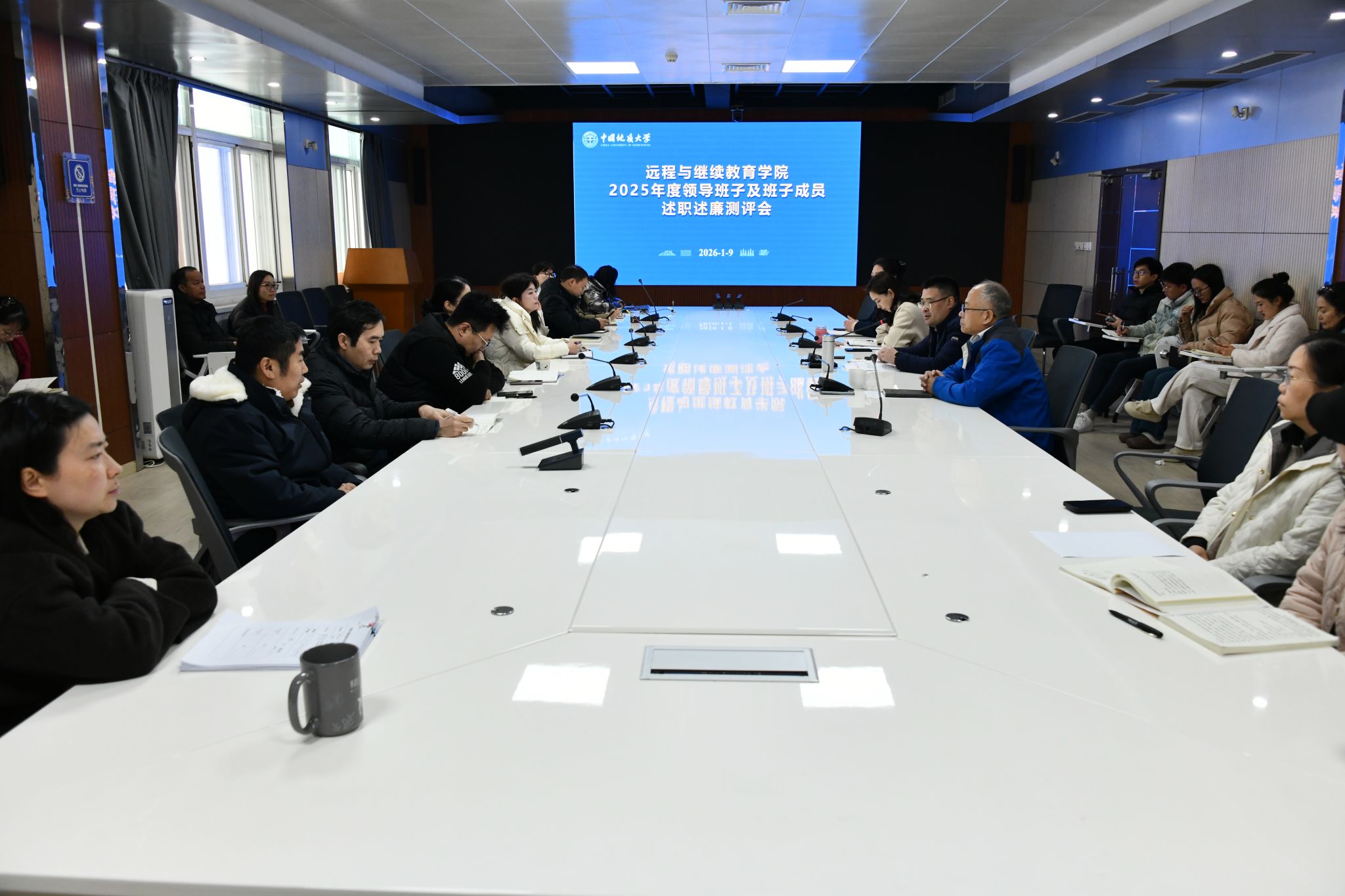 2026年1月9日,学院召开2025年领导班子及班子成员述职述廉测评会,对学院领导班子及班子成员进行了年度考核。会议由学院党总支书记、院长邬海峰主持,全体教职工参加会议。