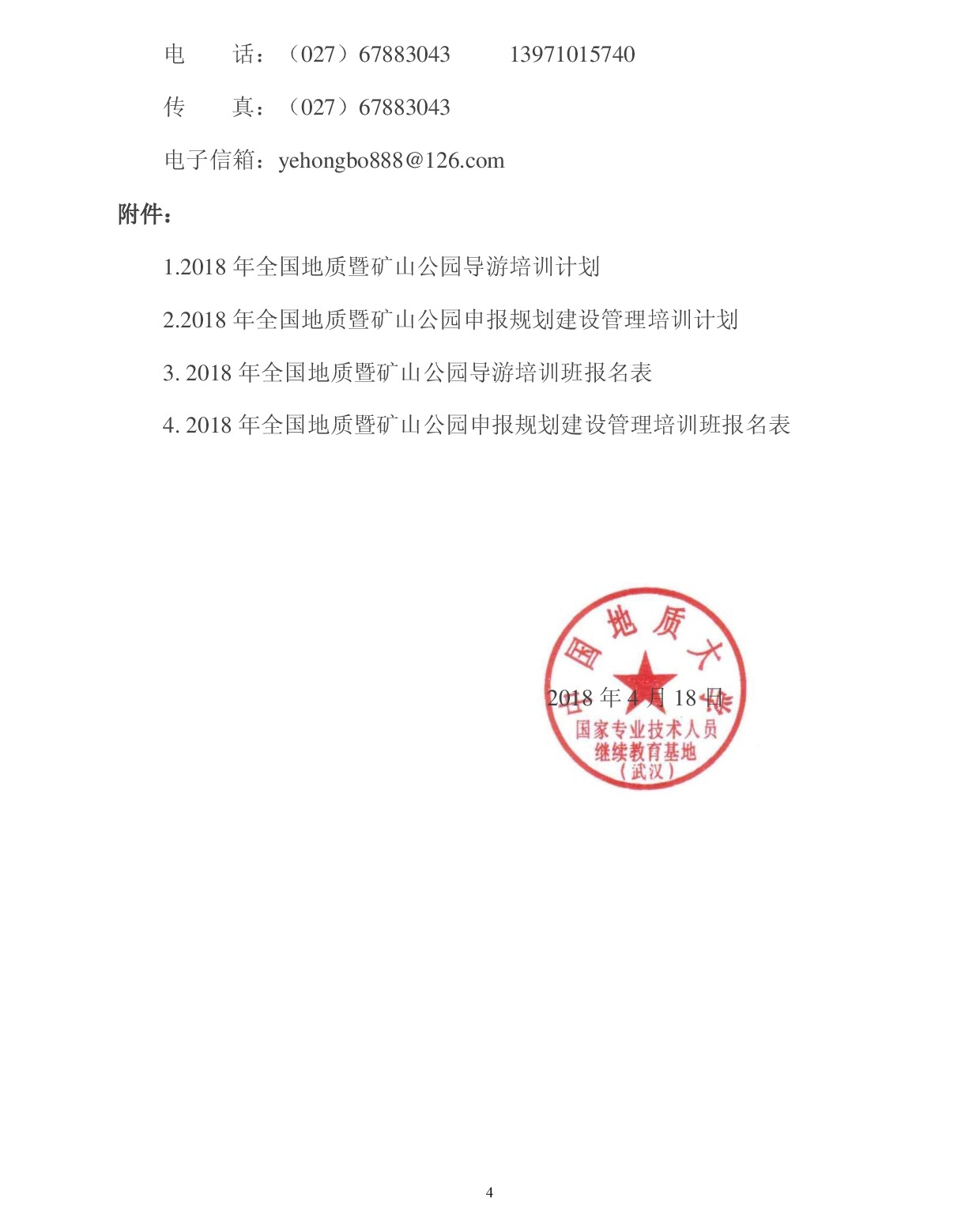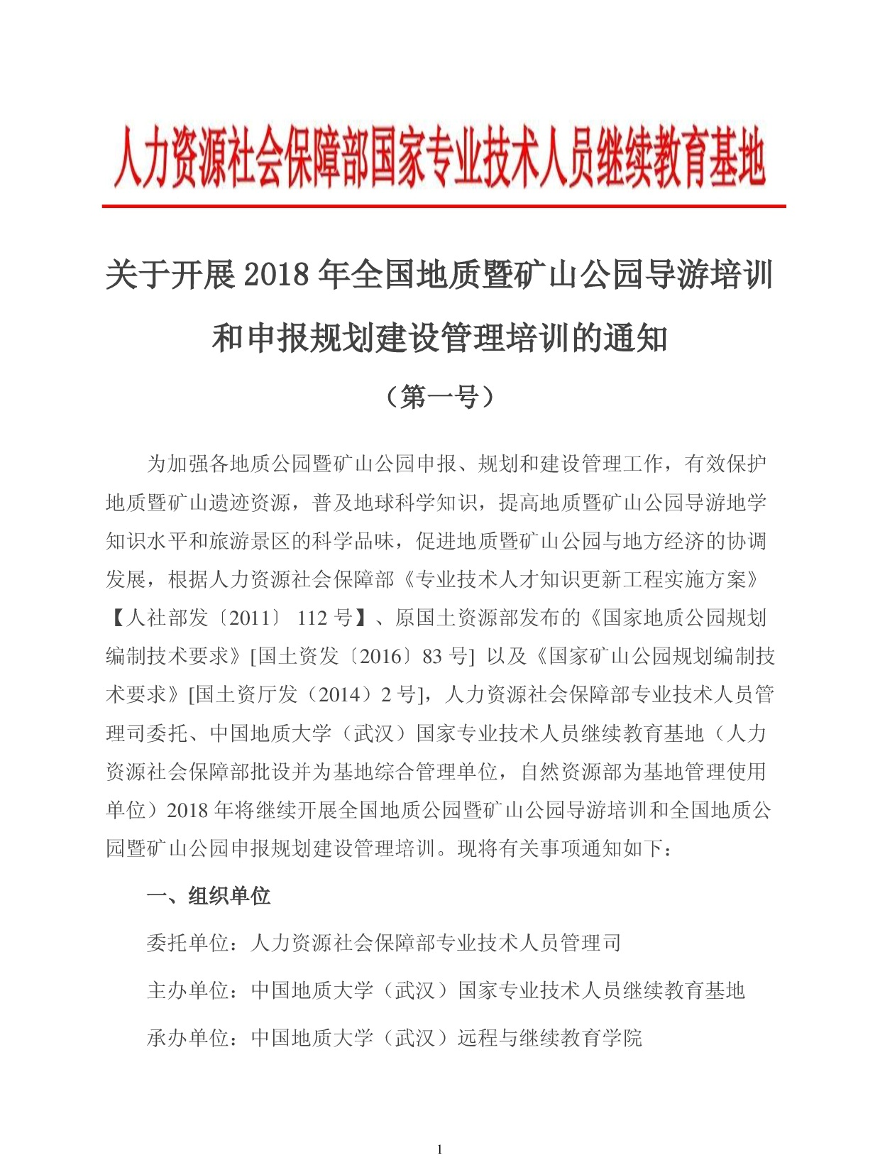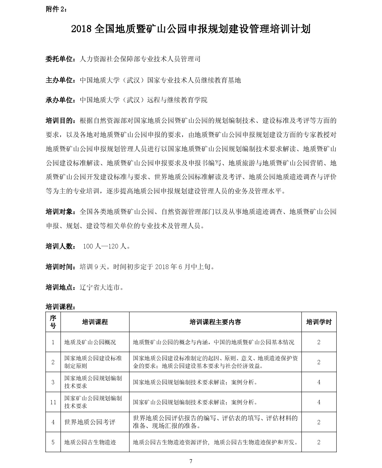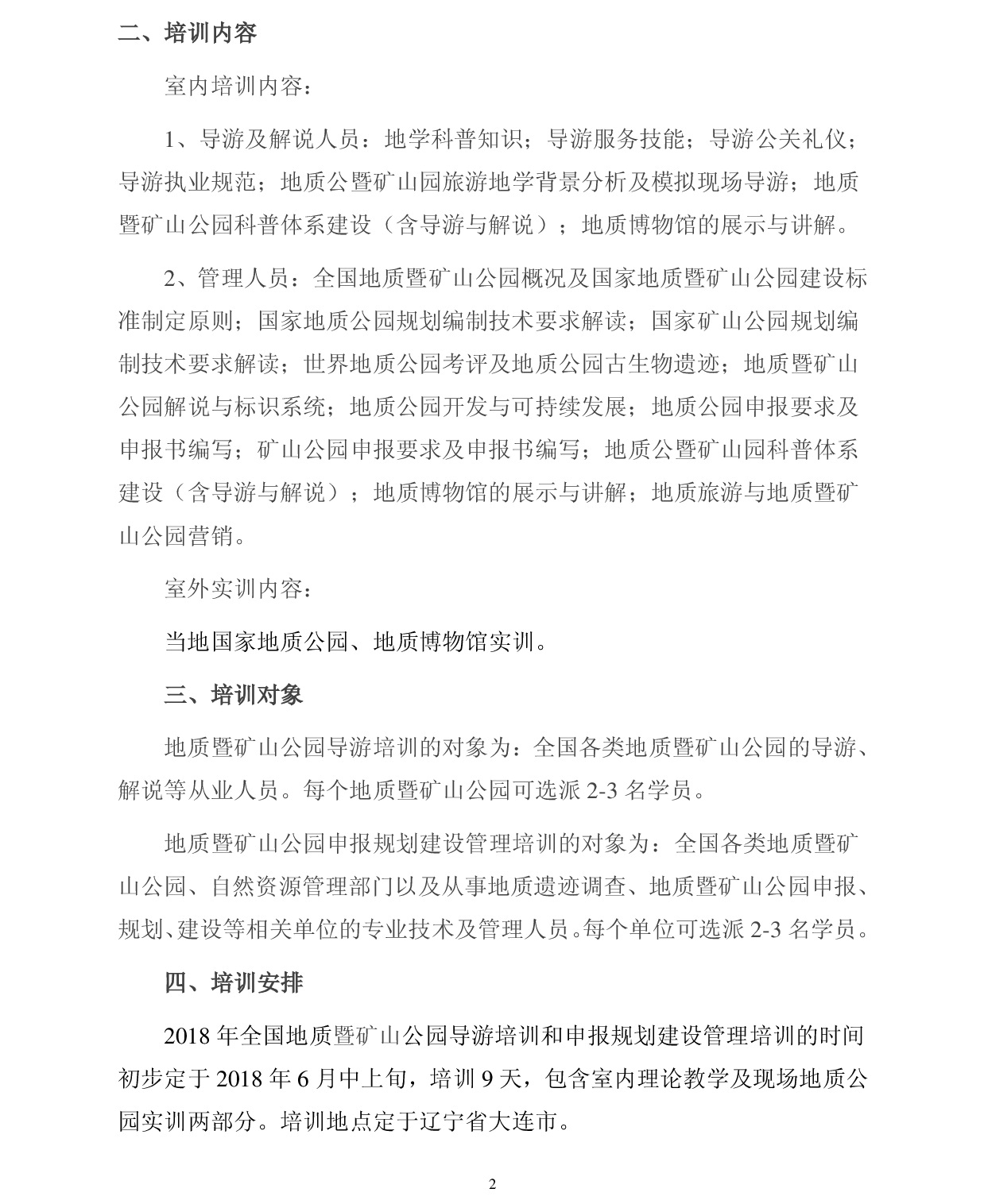 2018年全国地质暨矿山公园系列培训报到通知(二号)