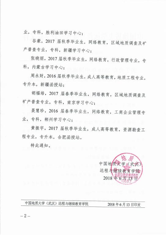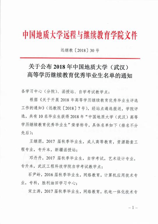 关于公布2018年WilliamHill威廉希尔高等学历继续教育优秀毕业生名单的通知