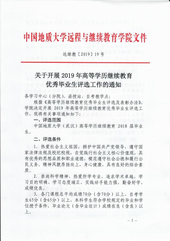 关于开展2019年高等学历继续教育优秀毕业生评选工作的通知