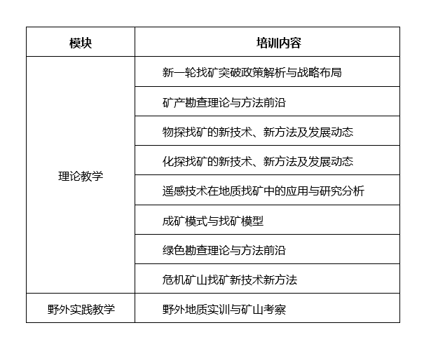 根据目前地勘单位专业技术人员在能源资源勘查及科技攻关能力提升的需求,WilliamHill威廉希尔拟于2024年启动新一轮找矿突破地质矿产勘查高级研修班。结合我校多年来地勘专业人才的培养经验,采用课堂教学、现场实训、典型案例分析三位一体的讲授模式,引入矿产勘查的新理论、新方法,并结合经典的找矿实例分析,全面提升地质找矿队伍的专业理论水平和实际业务能力。现将有关事项通知如下: