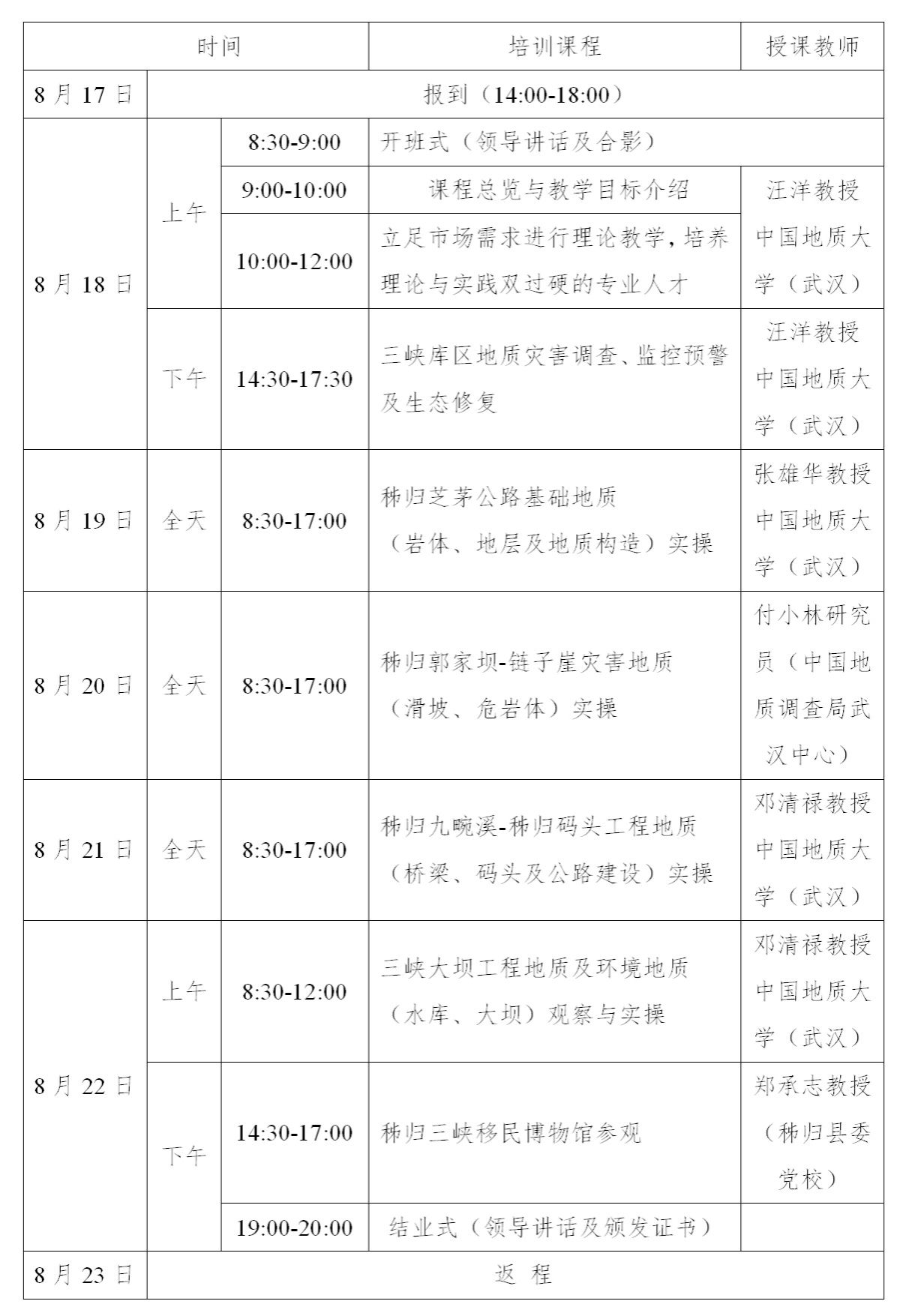 以秭归产学研实践基地及教育部长江三峡库区地质灾害研究中心为基础平台,以宜昌三峡地区基础地质、灾害地质、工程地质及环境地质为实习对象,建立一个国家级地质类“双师型”中高级职业教师野外实训平台,系统提升地质类“双师型”教师的野外施教能力,培养一支理论与实践双过硬的高素质、复合型教师队伍。
