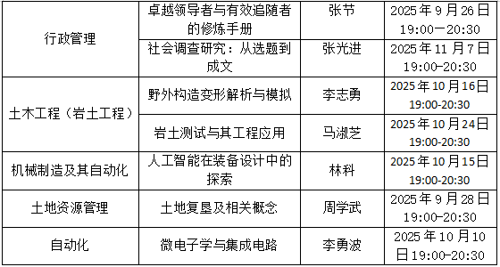 根据2025年秋季学期教学进度,各专业综合性直播教学安排已确定,请各位同学按时参加学习。