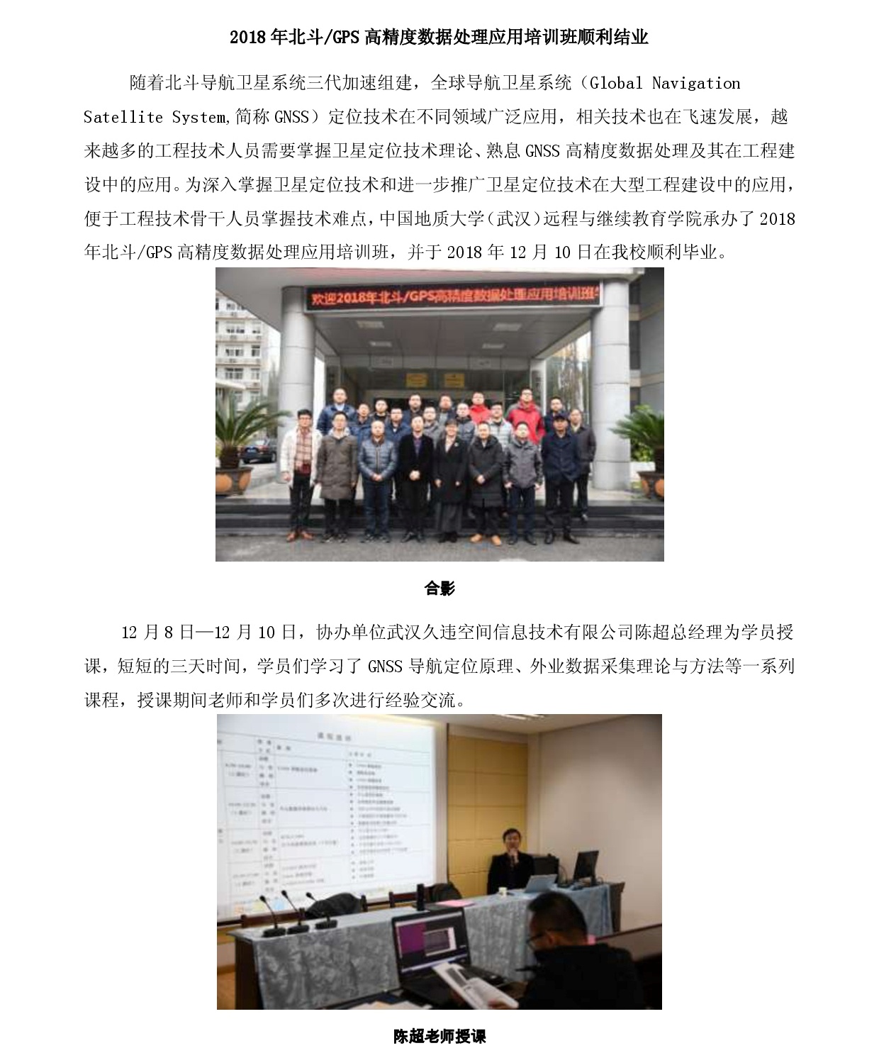 2018年北斗/GPS高精度数据处理应用培训班顺利结业