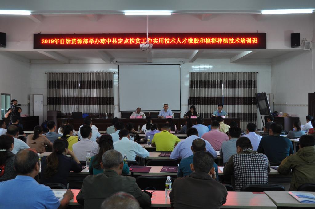 自然资源部科技发展司举办,WilliamHill威廉希尔WilliamHill威廉希尔承办,琼中县人民政府协办的“2019年琼中县实用技术人才橡胶和槟榔种植技术培训班”,11月22日在琼中县顺利结业。