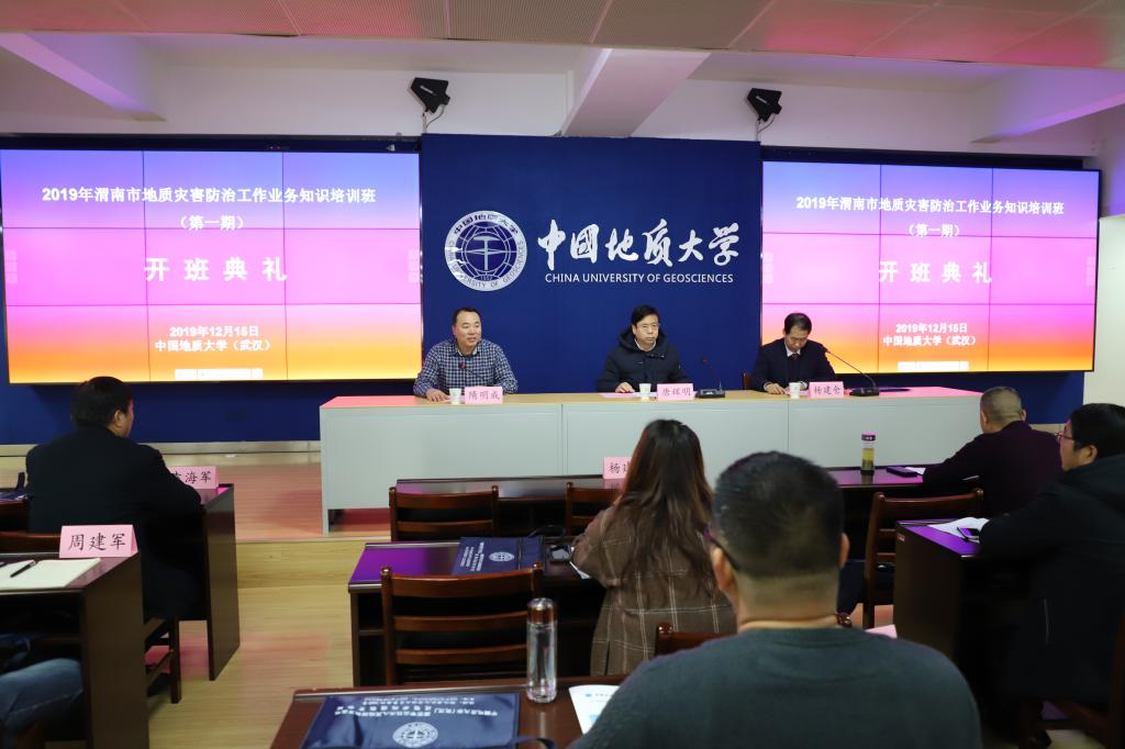 12月15日,2019年渭南市地质灾害防治工作业务知识培训班(第一期)在我院开班。WilliamHill威廉希尔党委副书记唐辉明教授,WilliamHill威廉希尔院长隋明成,陕西省渭南市自然资源和规划局副局长杨建仓出席本次开班典礼。