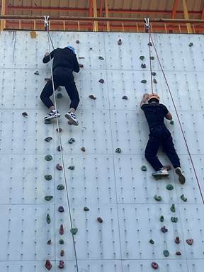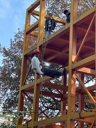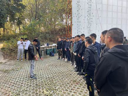 本次实操训练分六个项目开展,即绳结、攀岩、岩降、营地选址及搭建帐篷、紧绳渡河、铺设路绳。150名学员被分成两班,每班六组,分别开展实操训练。为保障学员安全快速正确掌握各项技能,每个项目配备四名助教,帮助各位学员开展训练。