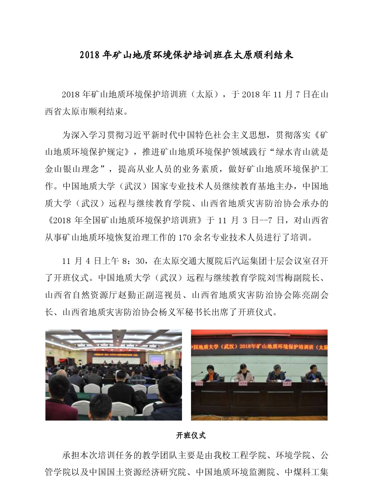 2018年矿山地质环境保护培训班在太原顺利结束