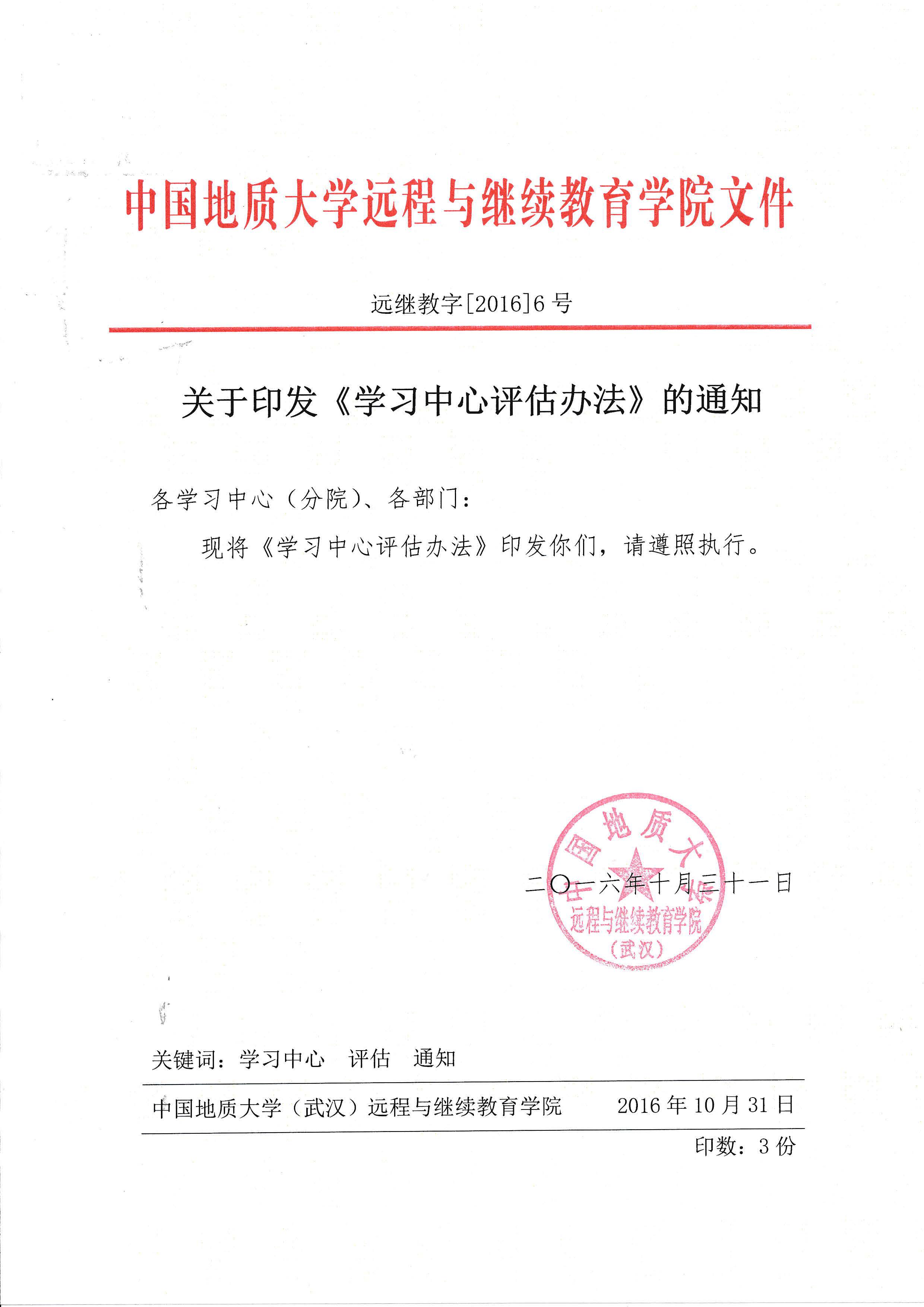 远继教字[2016]6号关于印发《学习中心评估办法》的通知