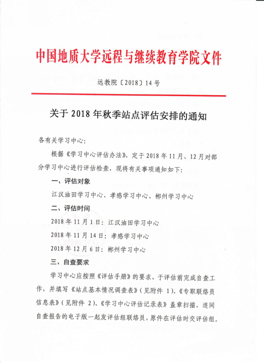 远教院【2018】14号《关于2018年秋季站点评估安排的通知》