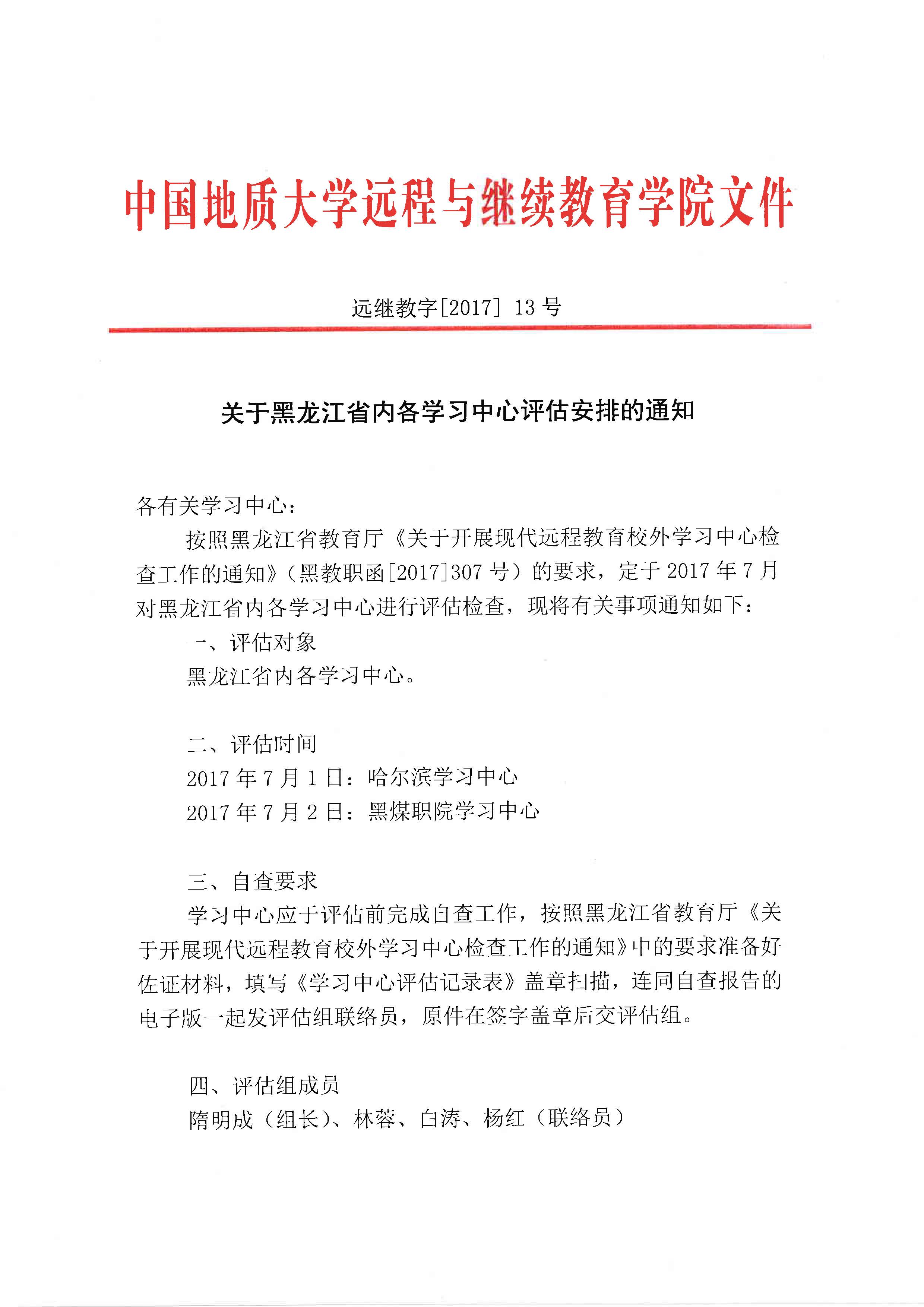 远继教字[2017]13号关于黑龙江省内各学习中心评估安排的通知