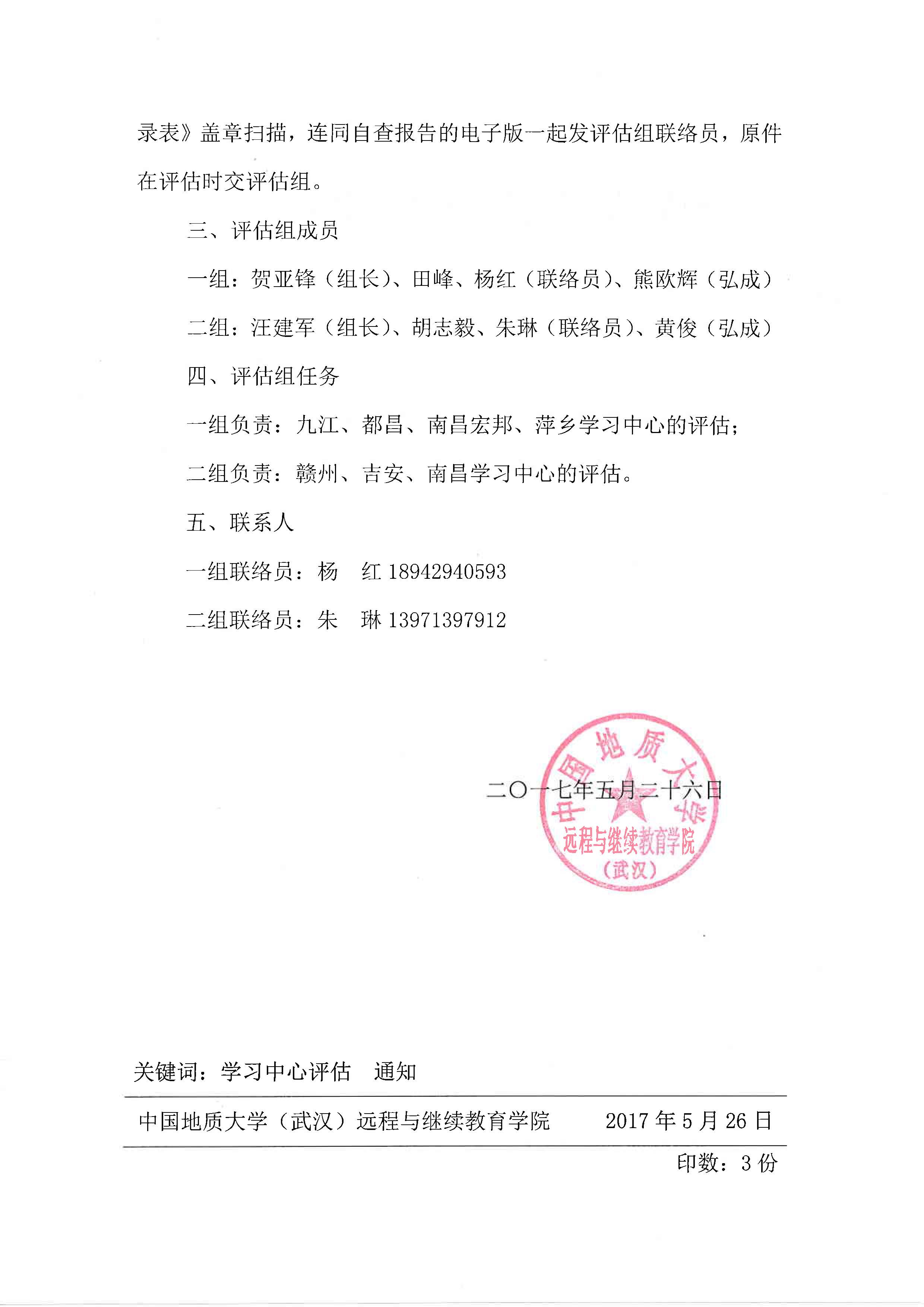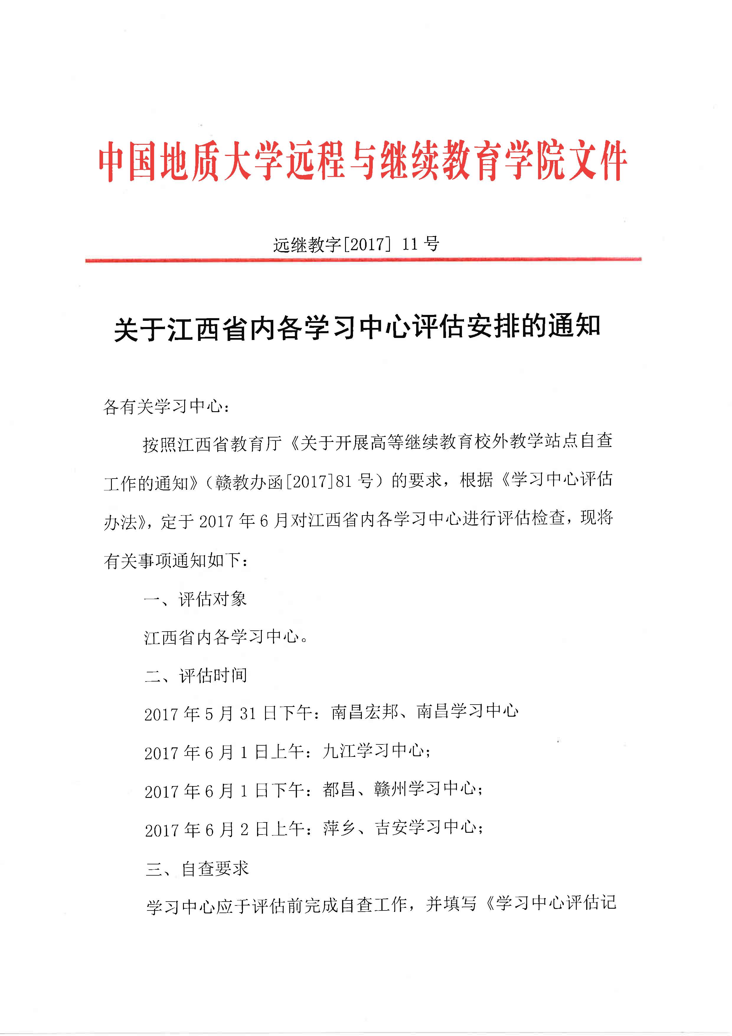 远继教字[2017]11号关于江西省内各学习中心评估安排的通知