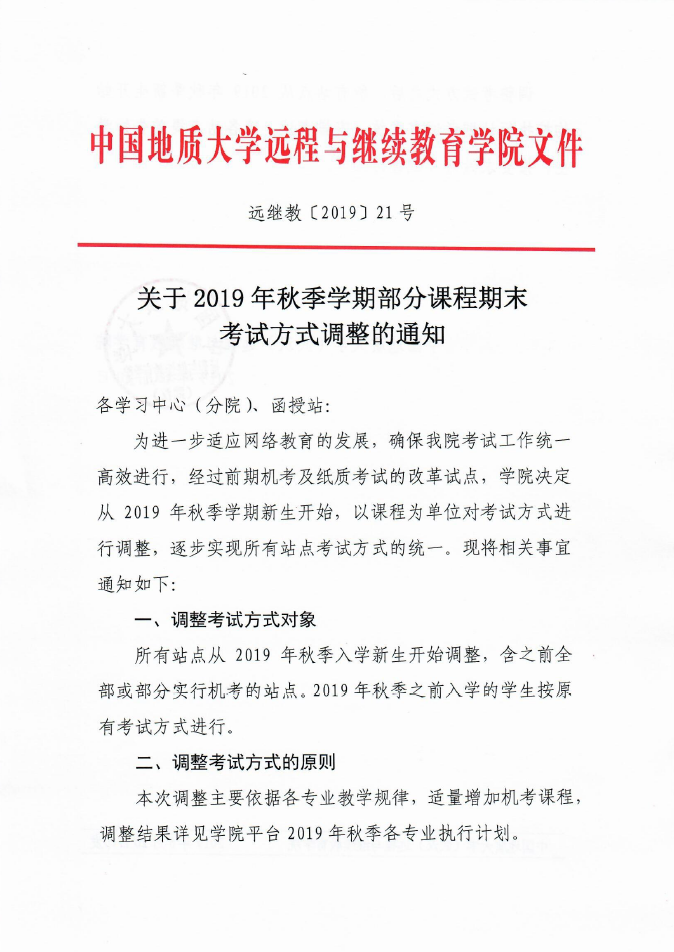 关于2019年秋季学期部分课程期末考试方式调整的通知
