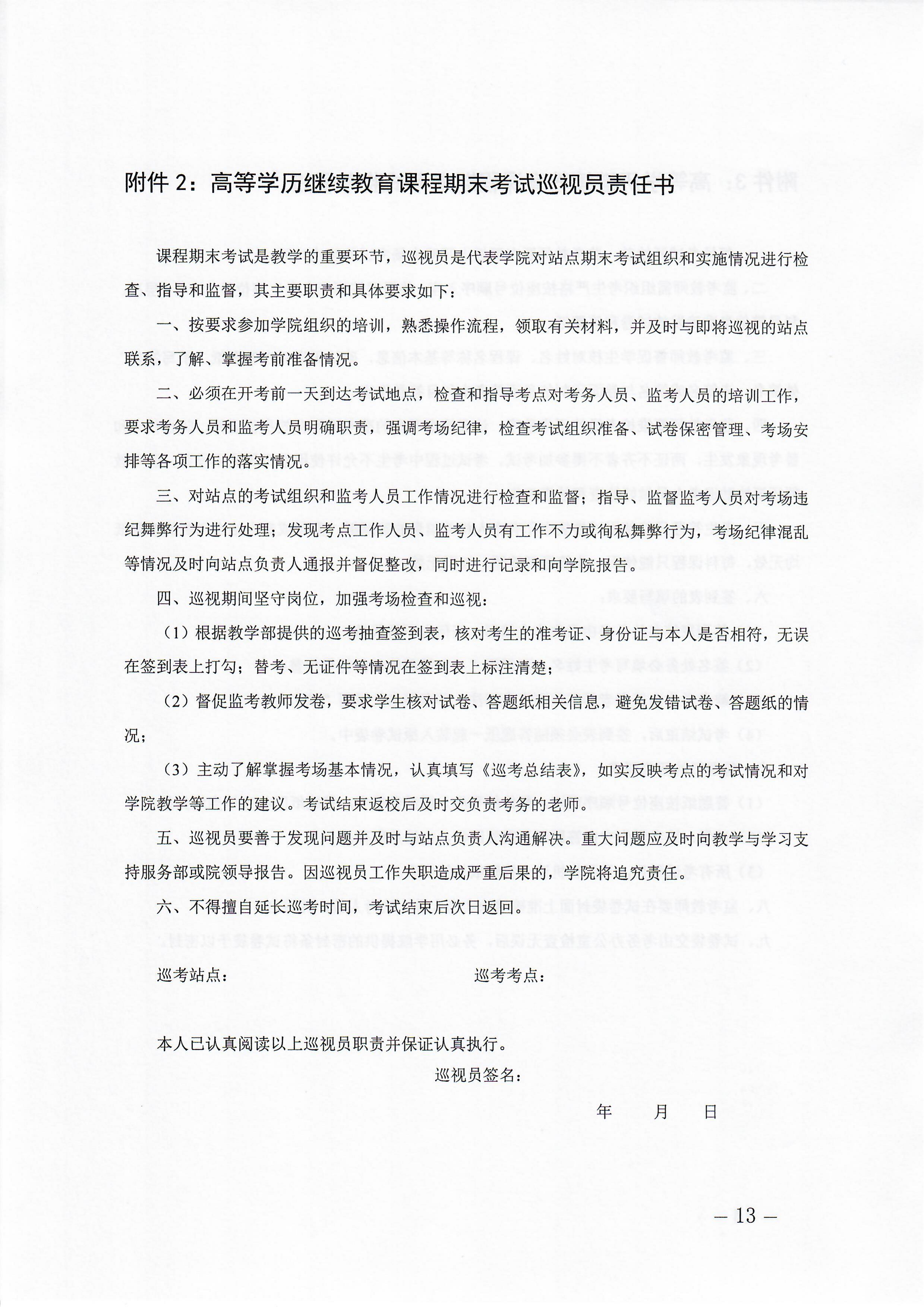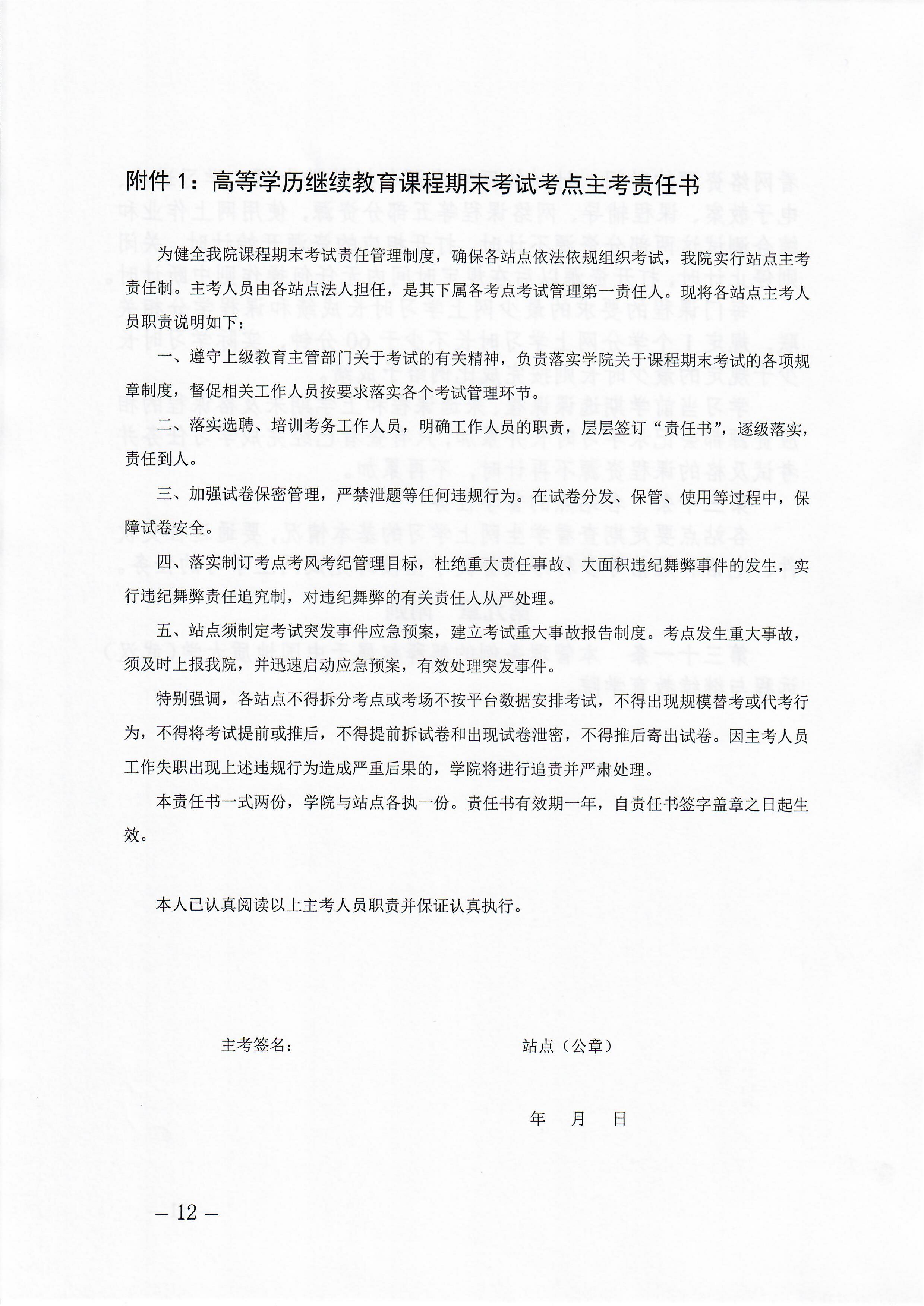 WilliamHill威廉希尔网络/成人教育课程期末考试学习中心/函授站考点主考责任书