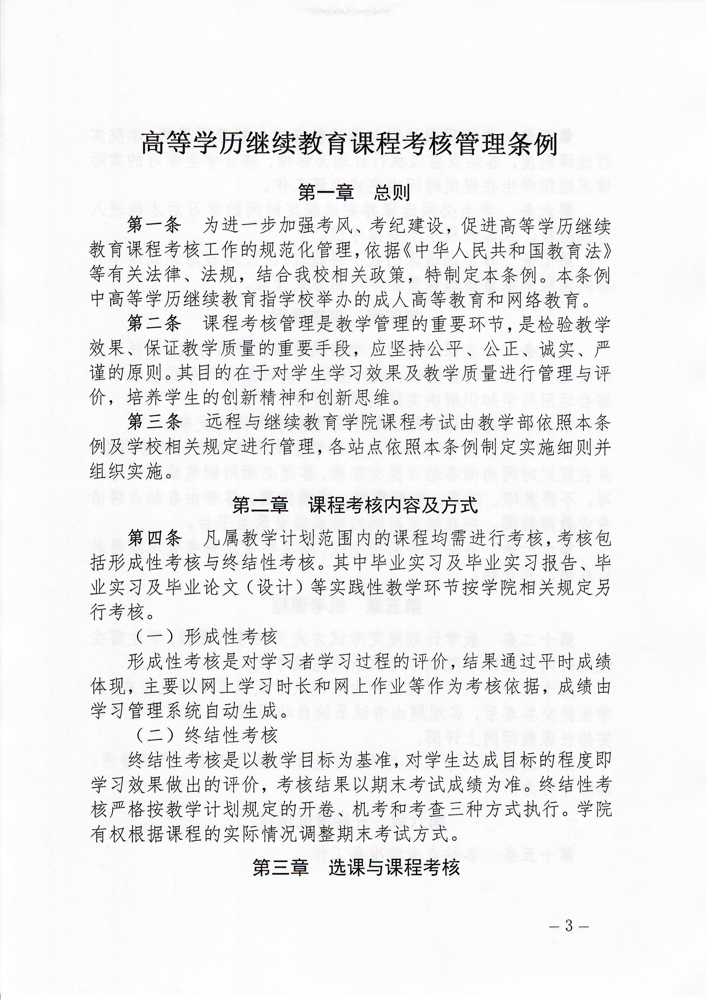 远继教[2018]17号《高等学历继续教育课程考核管理条例》