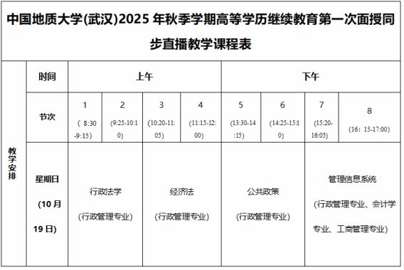 本学期开展的面授同步直播课程教学10月19日进行,根据教学计划,各专业面授课程及具体时间如下