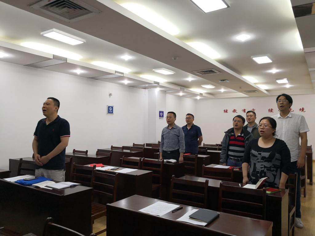 活动中,全体党员齐唱国歌,并重温了入党誓词并诵读党章,报告了支部到会人数及5月份党费收缴情况。