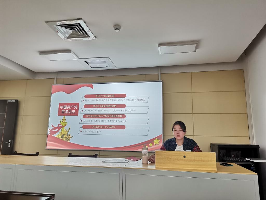 龚丽同志做了题为《中国共产党百年历史》的党课,进行了党史专题教育学习。从新民主主义革命时期、社会主义革命和建设时期、改革开放和社会主义现代化建设新时期、中国特色社会主义新时代四个时期带领大家再次回顾了中国共产党的百年发展历程。所有党员均表示,通过此次学习,再次感受到红色政权的来之不易,我们党尝尽了艰难困苦,轰轰烈烈,英勇奋斗,用行动诠释了“为有牺牲多壮志,敢教日月换新天”的豪情与壮志。