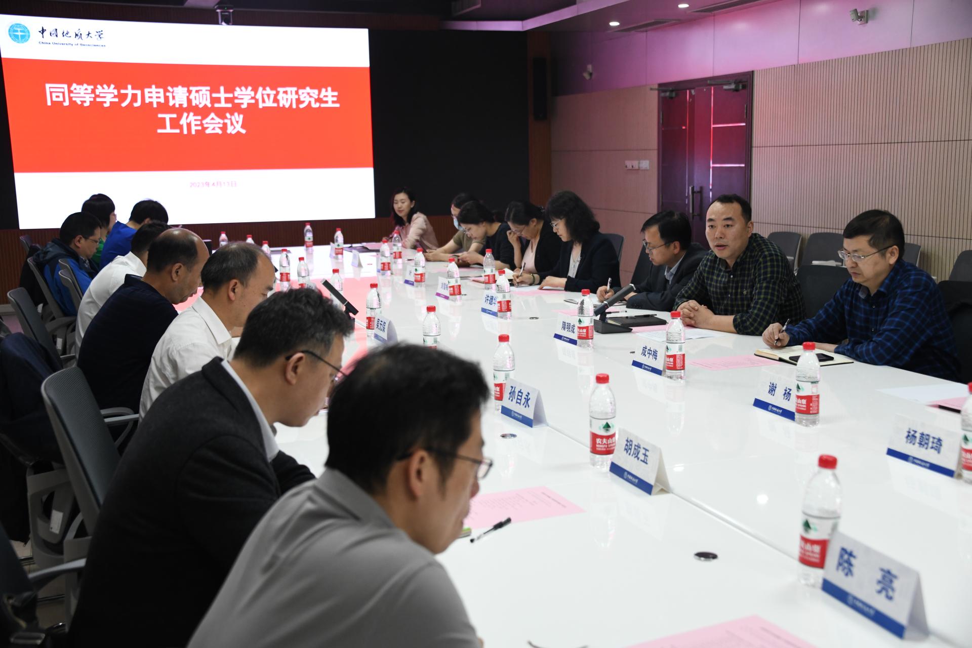 地球科学学院、资源学院、环境学院、工程学院、地球物理与空间信息学院、海洋学院、地理与信息工程学院、公共管理学院、体育学院、计算机学院、珠宝学院等专业学院参会领导和研究生秘书,就我校同等学力申请硕士学位研究生教育生源质量、课程建设、培养过程等工作进行探讨。并就工作中存在的问题,面临的困难,以及下一步的发展方向进行了充分的讨论和交流。