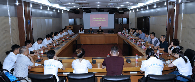 隋明成院长首先致欢迎词。他代表学院、全体教职工对毕业生代表表示了热烈的欢迎和衷心的祝贺。他向毕业生们简要介绍了地大的建校历史,并从教学资源、教学管理和教学服务三方面阐述学院的运行机制和人才培养模式。会上,隋明成院长向毕业生们提出三点希望:一是终身学习,追求真理;二是立足岗位,再创辉煌;三是饮水思源,心系母校。最后,他祝愿同学们在工作、生活和人生当中,不断提升能力,演绎精彩。