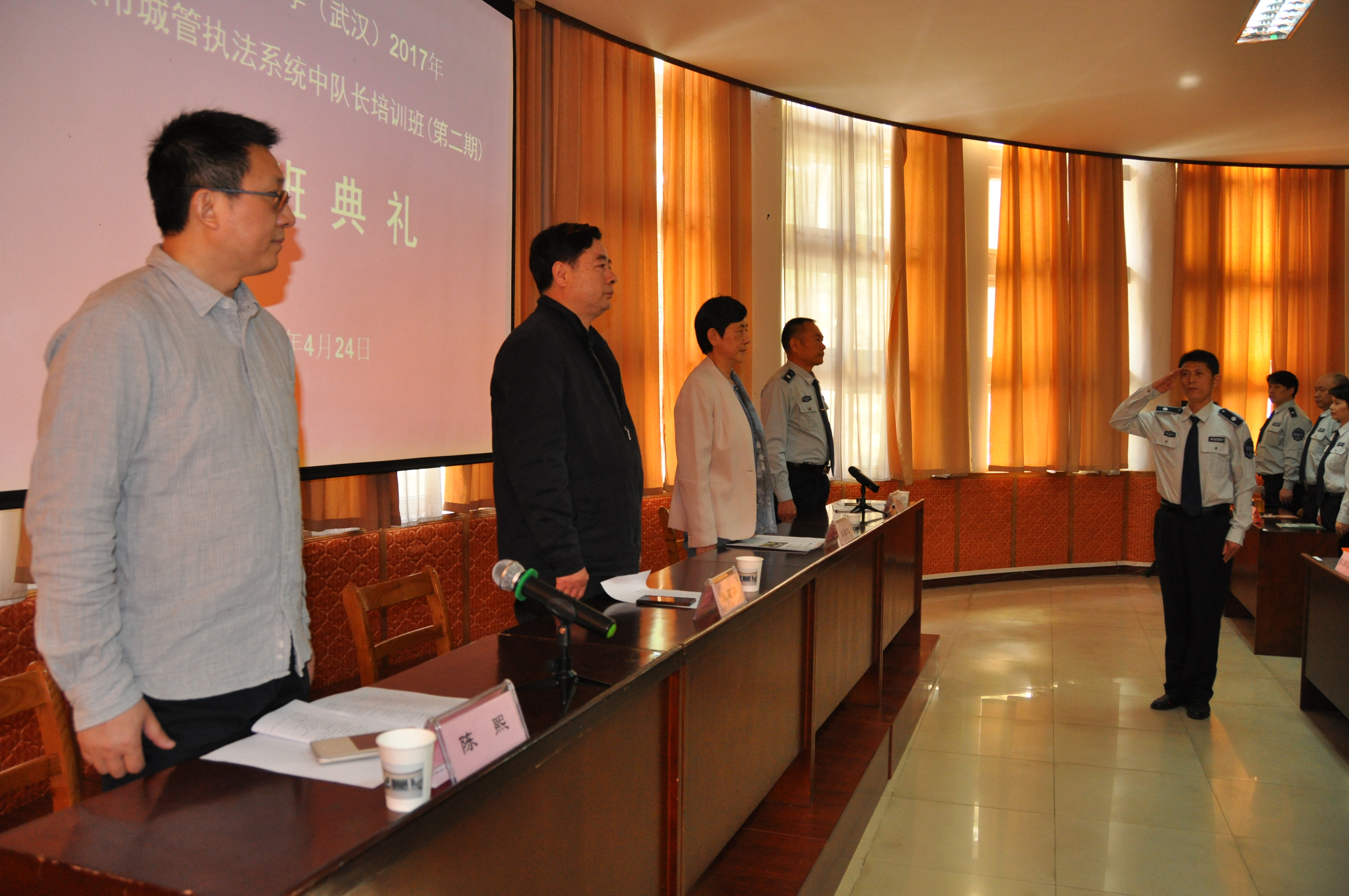 本期培训班为2017年武汉市城管执法系统中队长培训的第二期,学员将在学校培训五天。培训内容有政策理论学习、现场执法观摩、队列训练、分组研讨、文体活动等。