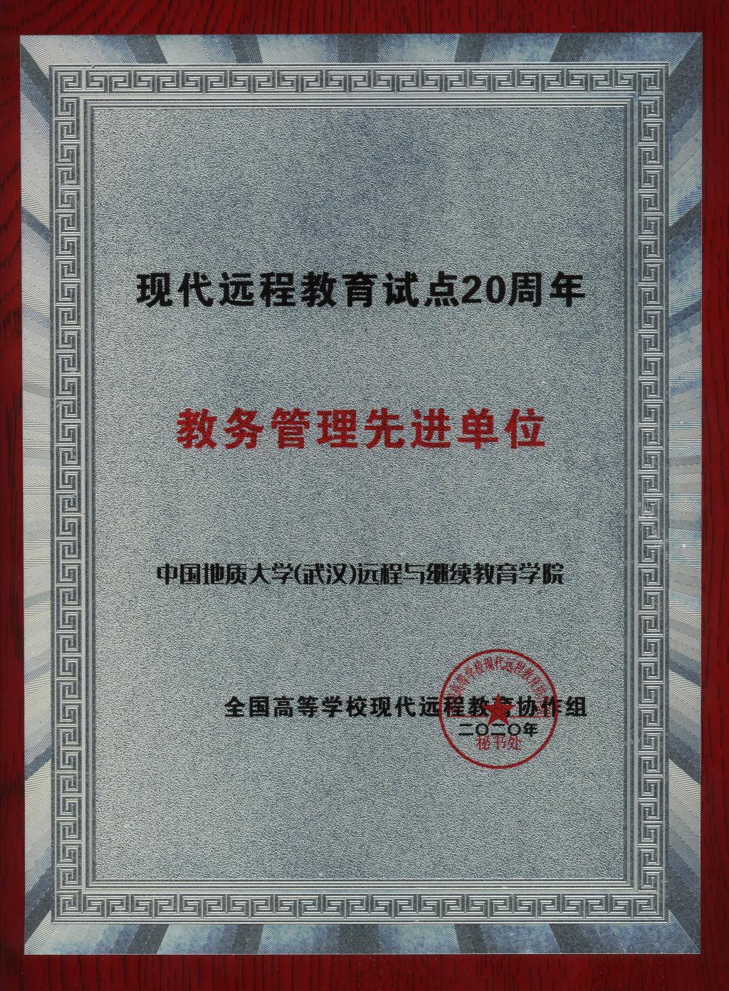 我院荣获现代远程教育试点20周年“教务管理先进单位”称号