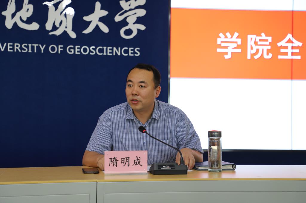 最后,隋明成做学院工作中期总结,对学院这半年的工作进展情况进行通报,强调后期的工作需按照年初计划积极推进,希望全体教职工立足自己的岗位,以学院的工作为己任,开拓创新,为学院发展做贡献。