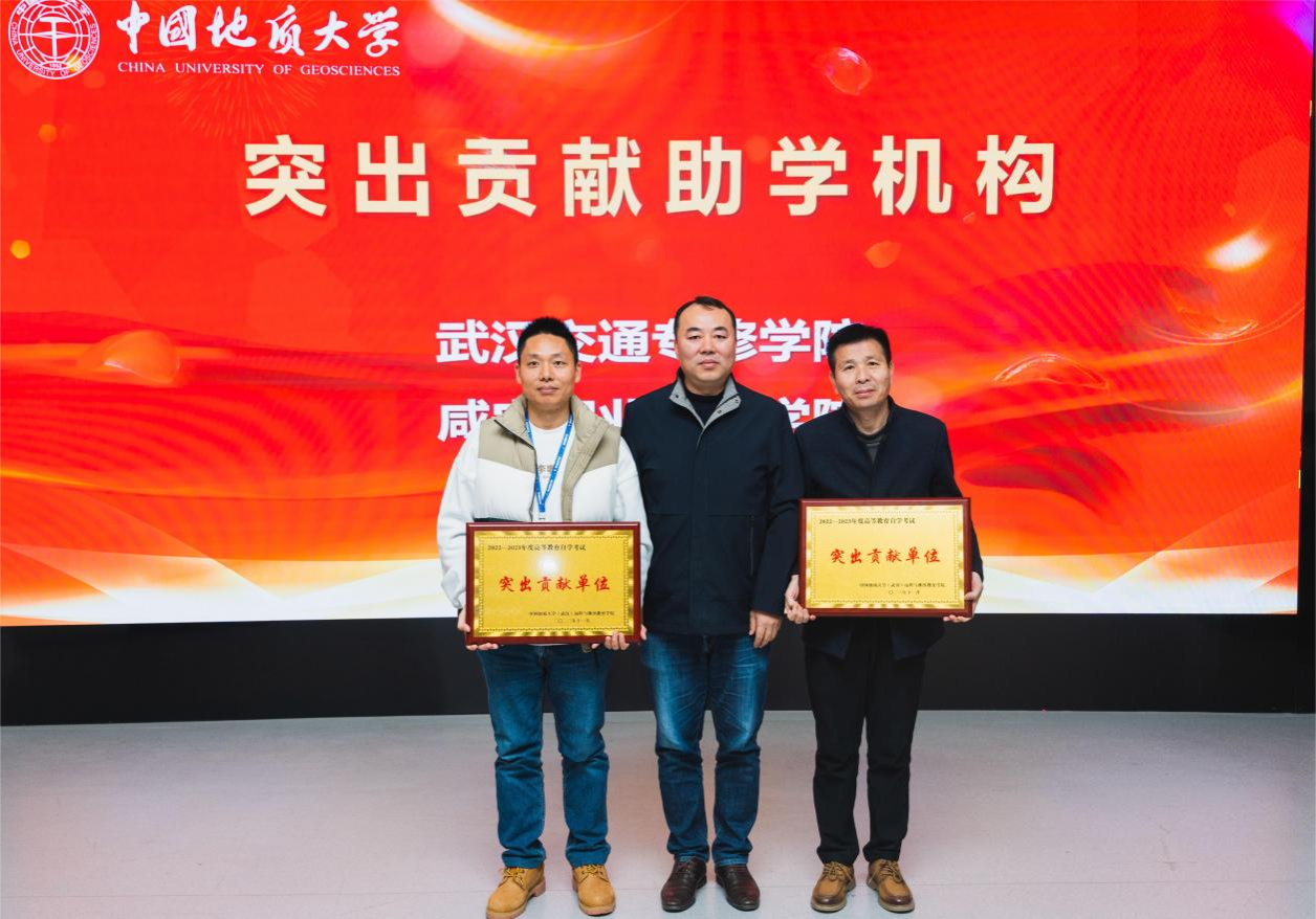 隋明成宣读了《关于公布2022-2023年度高等教育自学考试助学机构年检结果的通知》,参会领导向优秀助学单位和突出贡献单位授牌。