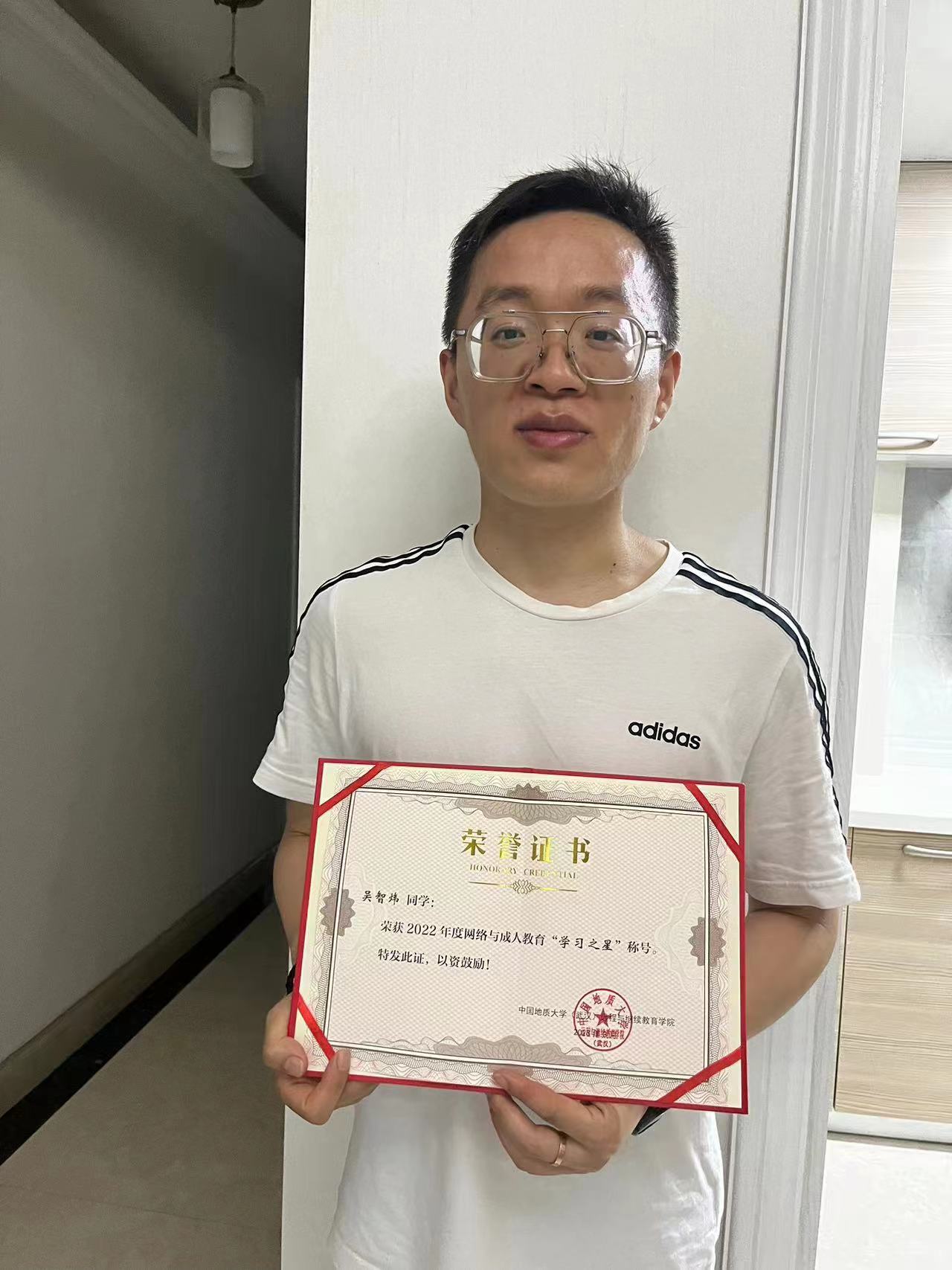 在阔别校园多年后,有幸能再次以学生的身份进行系统性地学习,此次获得“学习之星”称号是对我学习历程的认可,也勉励着我继续奋进,希望能与大家一同保持学习的热情与恒心。